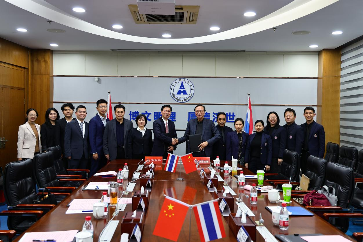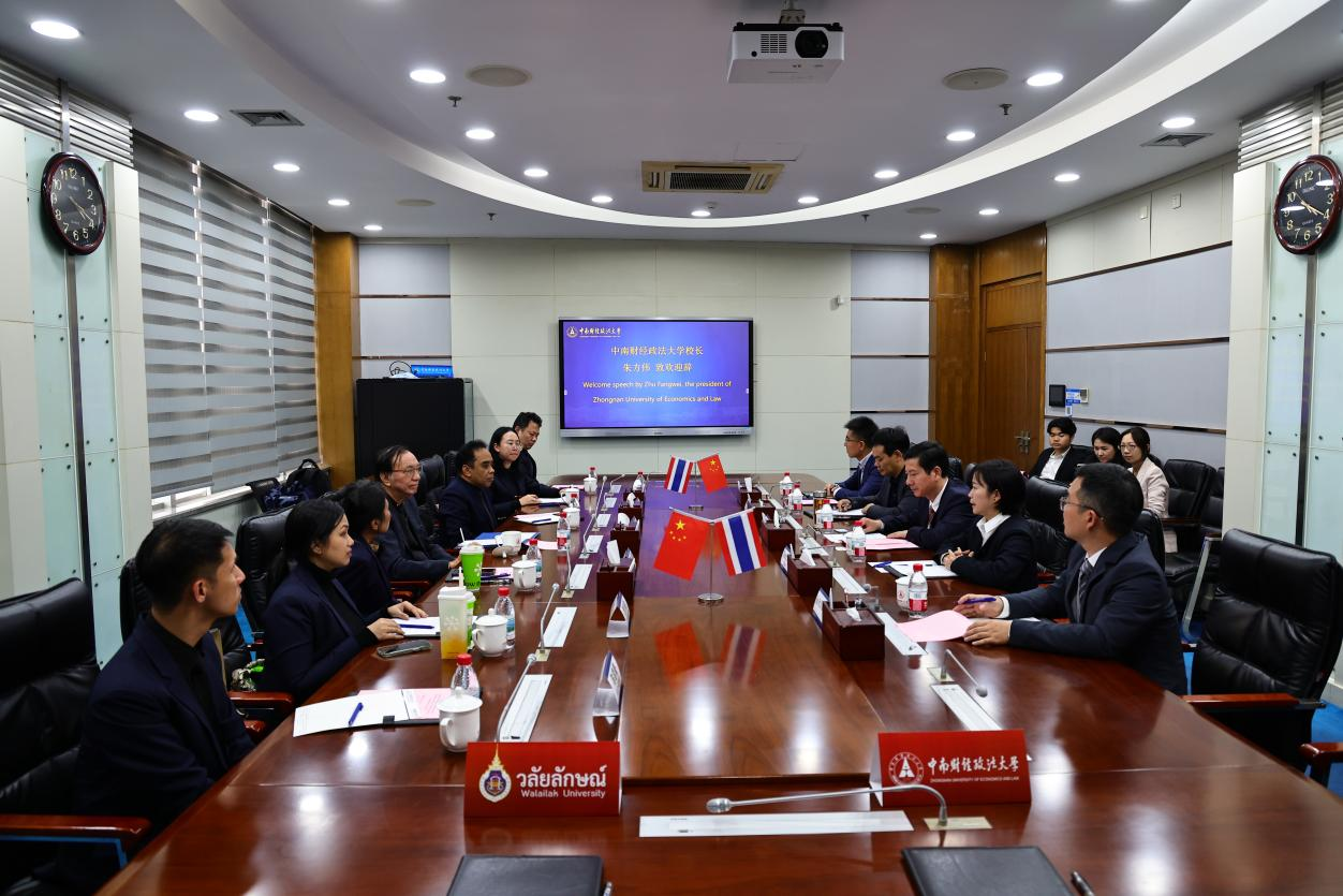2025年11月3日下午,中南财经政法大学与泰国瓦莱岚大学在中原楼五楼会议室举行“2+2”汉语言文学本科联合培养项目签约仪式。此次签约是两校深化国际教育合作的重要里程碑,也是我校首个来华留学“2+2”本科联合培养协议。中南财经政法大学校长朱方伟、国际教育学院院长郑影、新闻与文化传播学院院长余秀才,瓦莱岚大学校长颂巴·坦荣潭亚翁、副校长查伦·本亚坎等两校相关负责人出席仪式,双方就合作事宜深入交流。仪式由郑影院长主持。