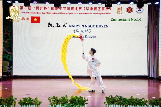 越南留学生阮玉玄以《驭龙记》为题,现场表演了一段舞龙,随后讲述了自己从“甩抹布”到“人龙合一”的学习历程。她将舞龙与中文学习巧妙结合,表达了对中国龙文化的敬意。同样来自越南的红绒以《时光的开关》为题,描绘了自己在武汉感受到的“1.5倍速”快节奏与“0.5倍速”慢生活。她从光谷广场的人潮谈到黄鹤楼小巷的烟火气,以细腻的观察和温暖的语言表达了自己融入中国生活的成长与感悟。阮玉玄和红绒均荣获二等奖。