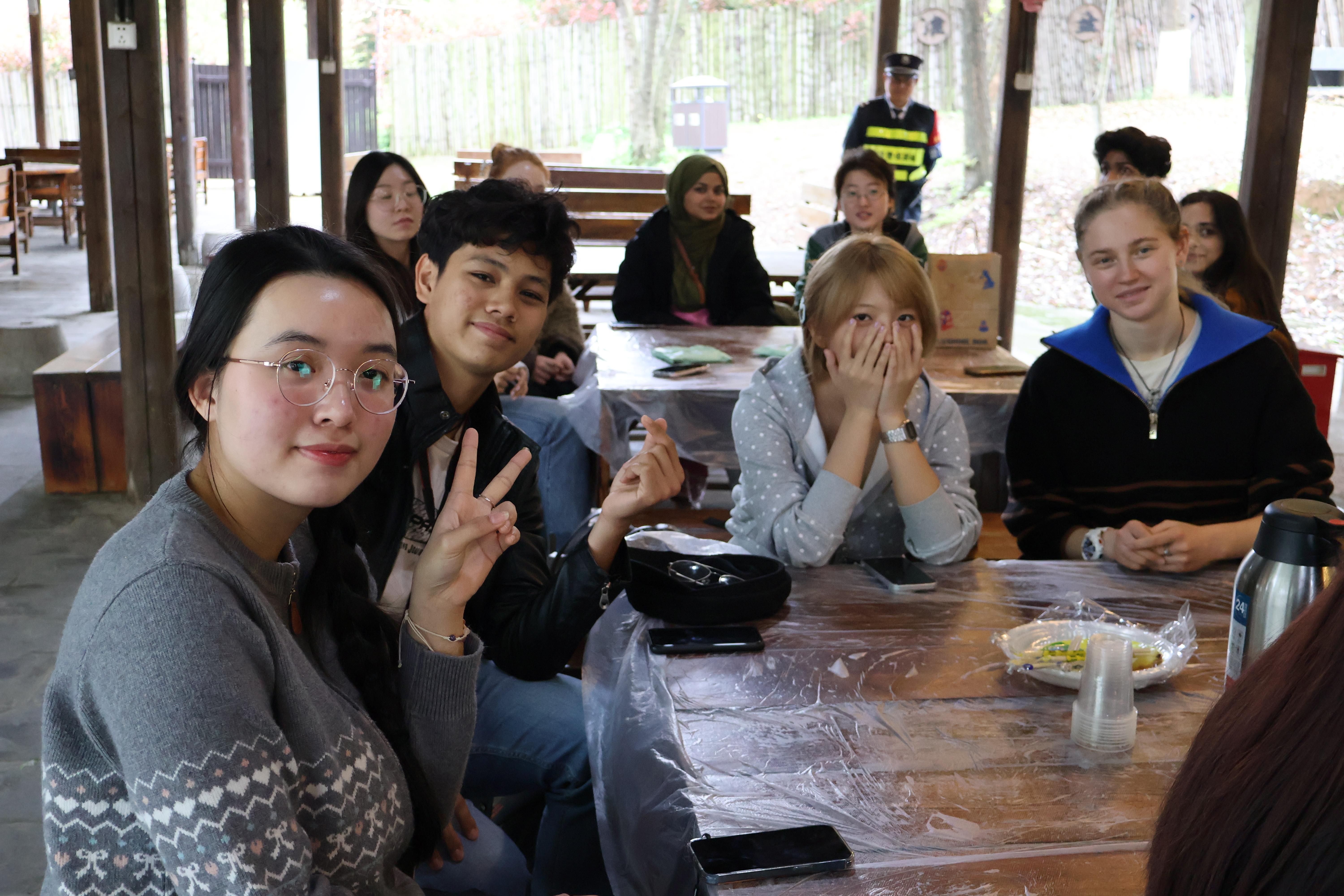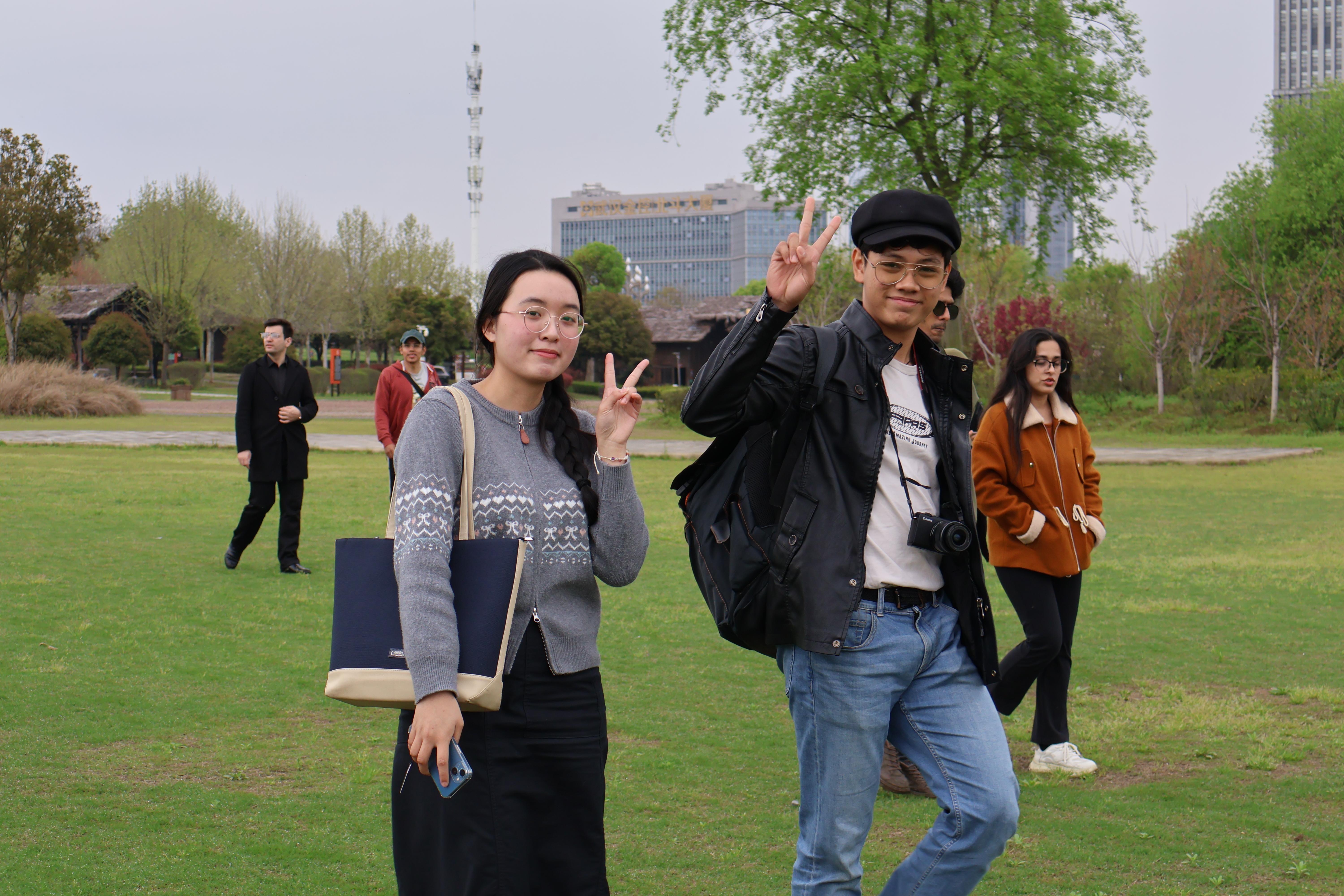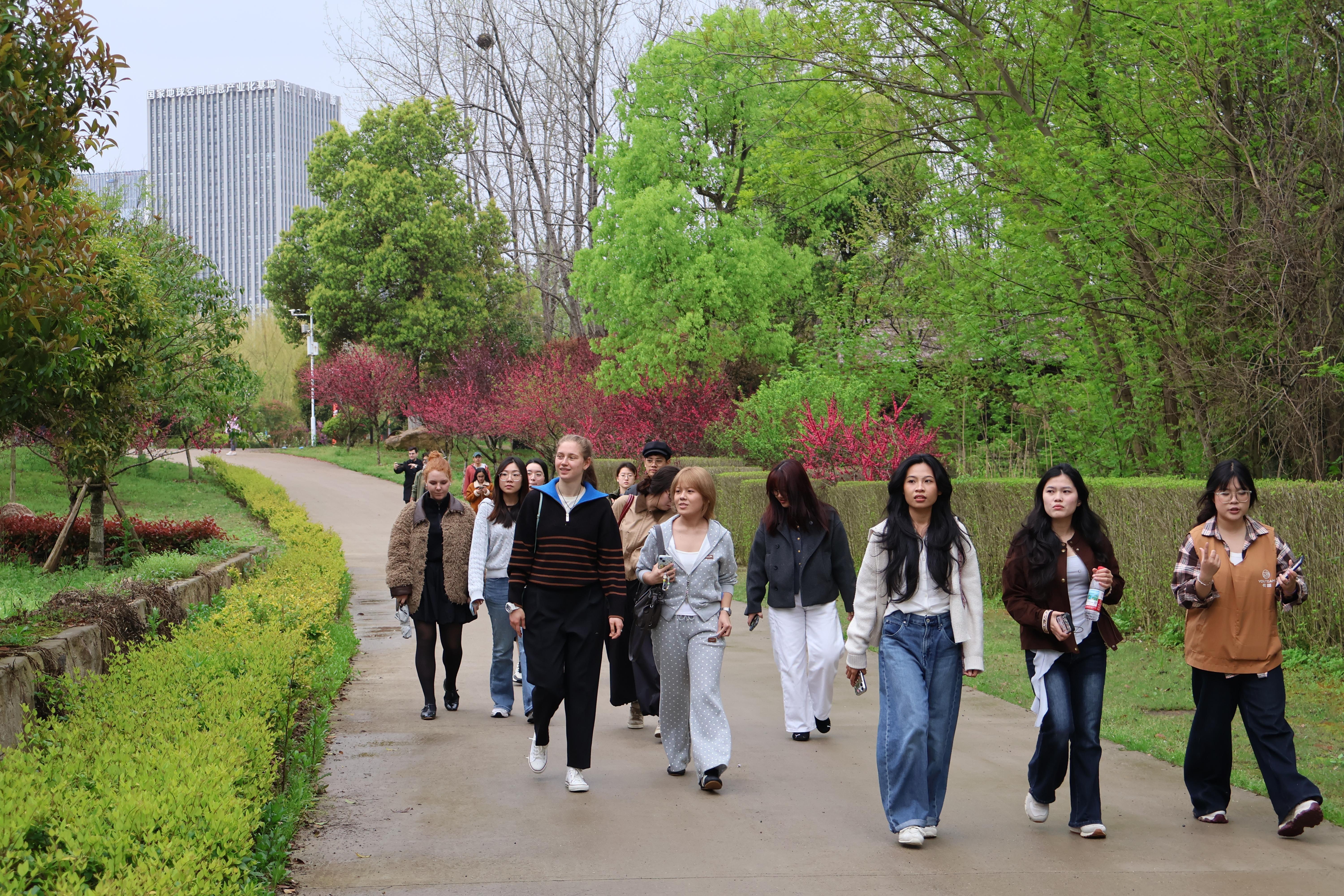 除了手作体验,活动还设置了春日徒步环节。师生们漫步在绿意盎然的园区中,欣赏春日盛景,感受自然生机。沿途的红花绿树、清新空气,让大家在忙碌的学习之余放松身心,也为中外学生提供了轻松交流的契机,进一步增进了彼此的友谊与了解。